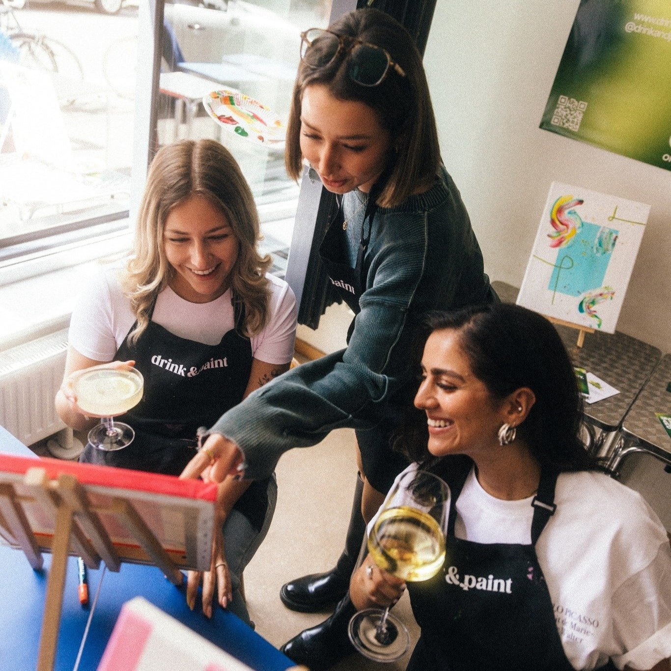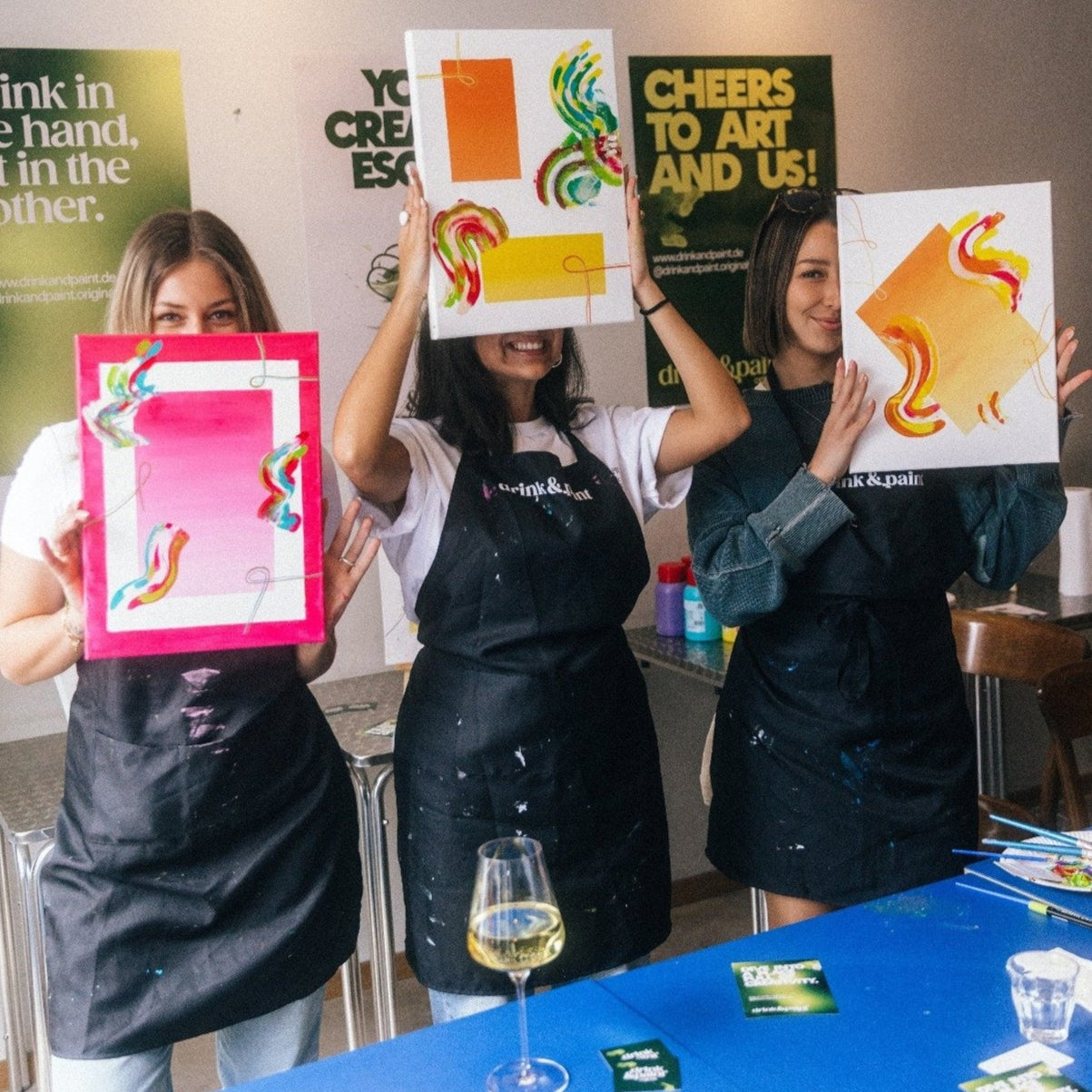 Egal ob Firmenfeier, Teambuilding oder einfach zum Afterwork – mit drink&paint wird’s bunt! Statt trockener Workshops erwartet euch ein kreativer Abend mit Farbe, Musik und Drinks, der euer Teamevent unvergesslich macht.