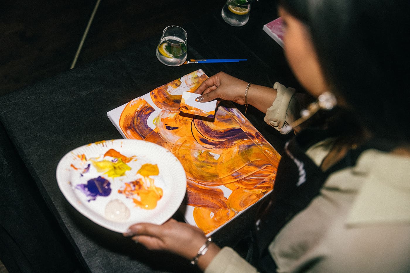 - Du führst 2-stündige Workshop-Events mit 20-40 Teilnehmern durch und unterstützt sie dabei kreativ zu werden und ihr eigenes Meisterwerk zu erschaffen.