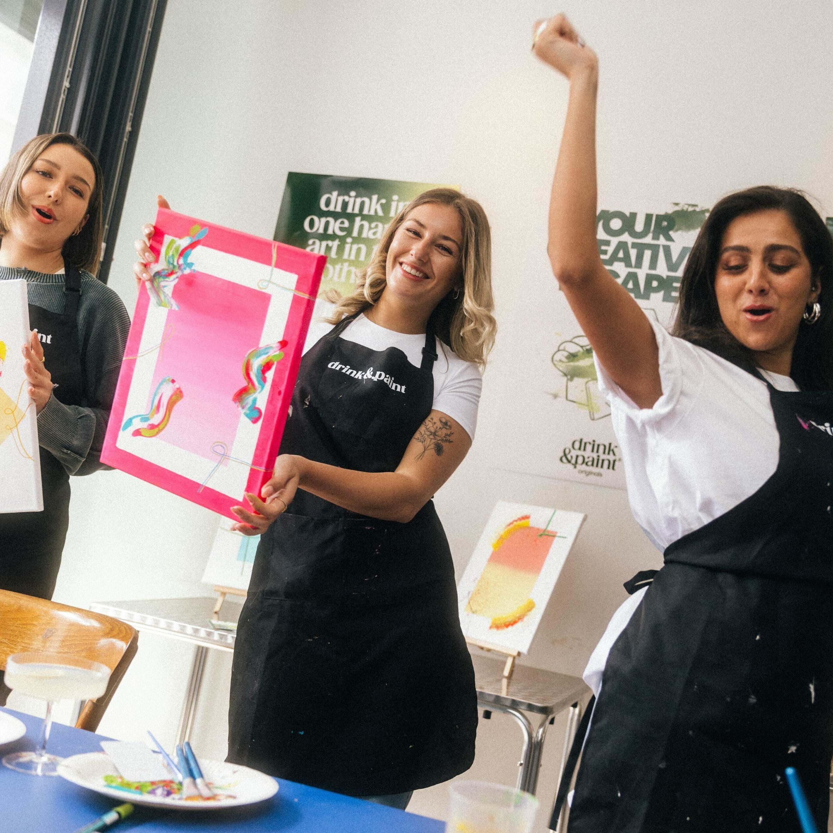 Lasst die Korken knallen und die Pinsel tanzen! Bei drink&paint feiern wir euren Junggesellinnenabschied kreativ, emotional & voller Vibes.